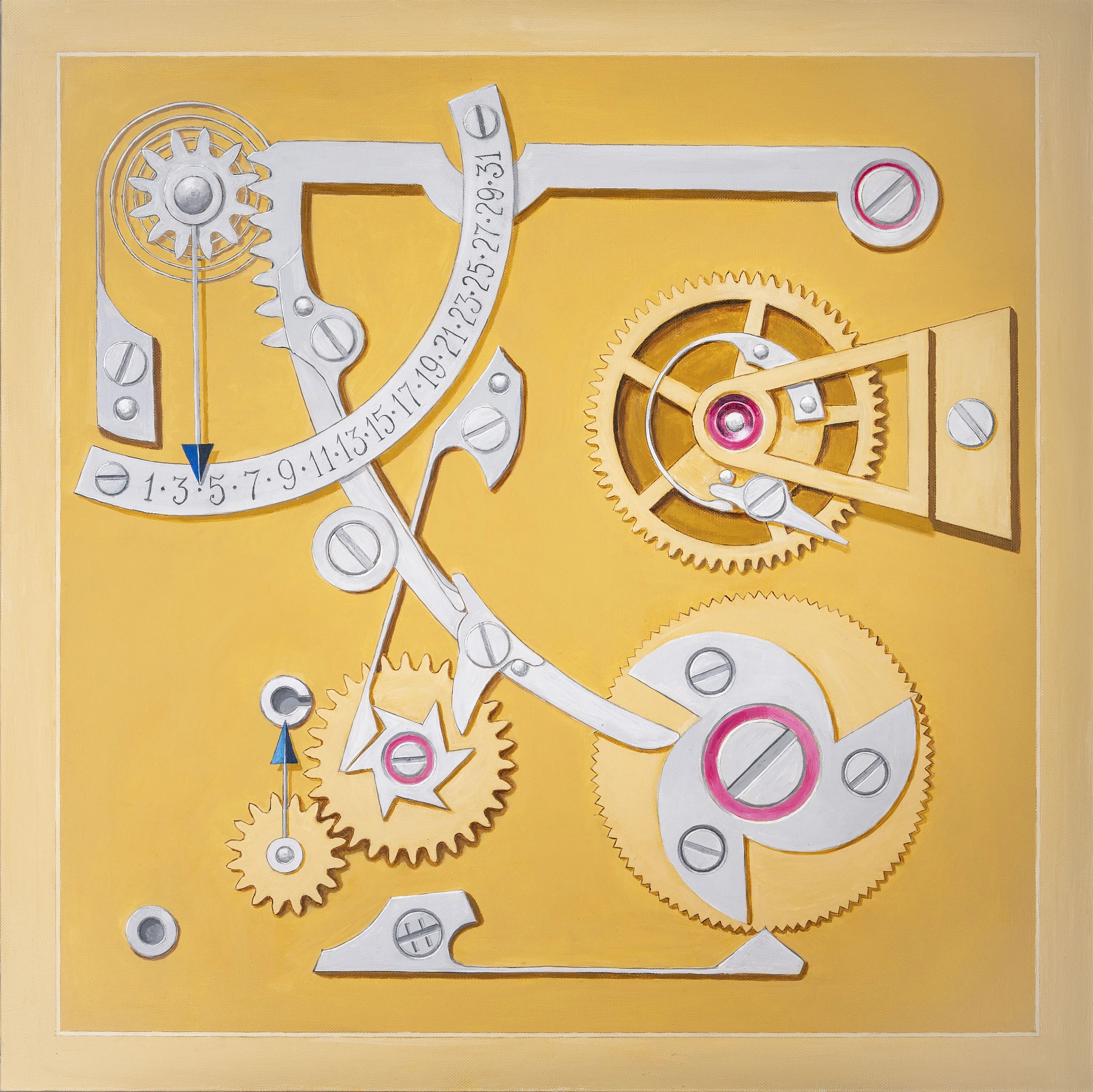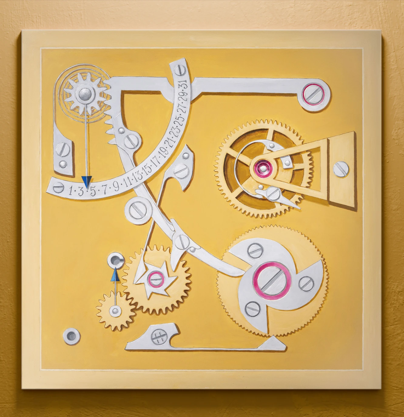 Сегодня мастер нашёл новый способ воплотить свою идею – в живописи. Картина «Осень», созданная Чайкиным, переносит изобретение в художественную плоскость. Тёплая палитра, в которой сочетаются золото и сталь с редкими проблесками рубинового сияния, передаёт атмосферу ранней осени: золотая листва, залитые солнцем дни и первые заморозки. Центральным образом картины стал календарный модуль «Осень» для часовой серии «Времена года».