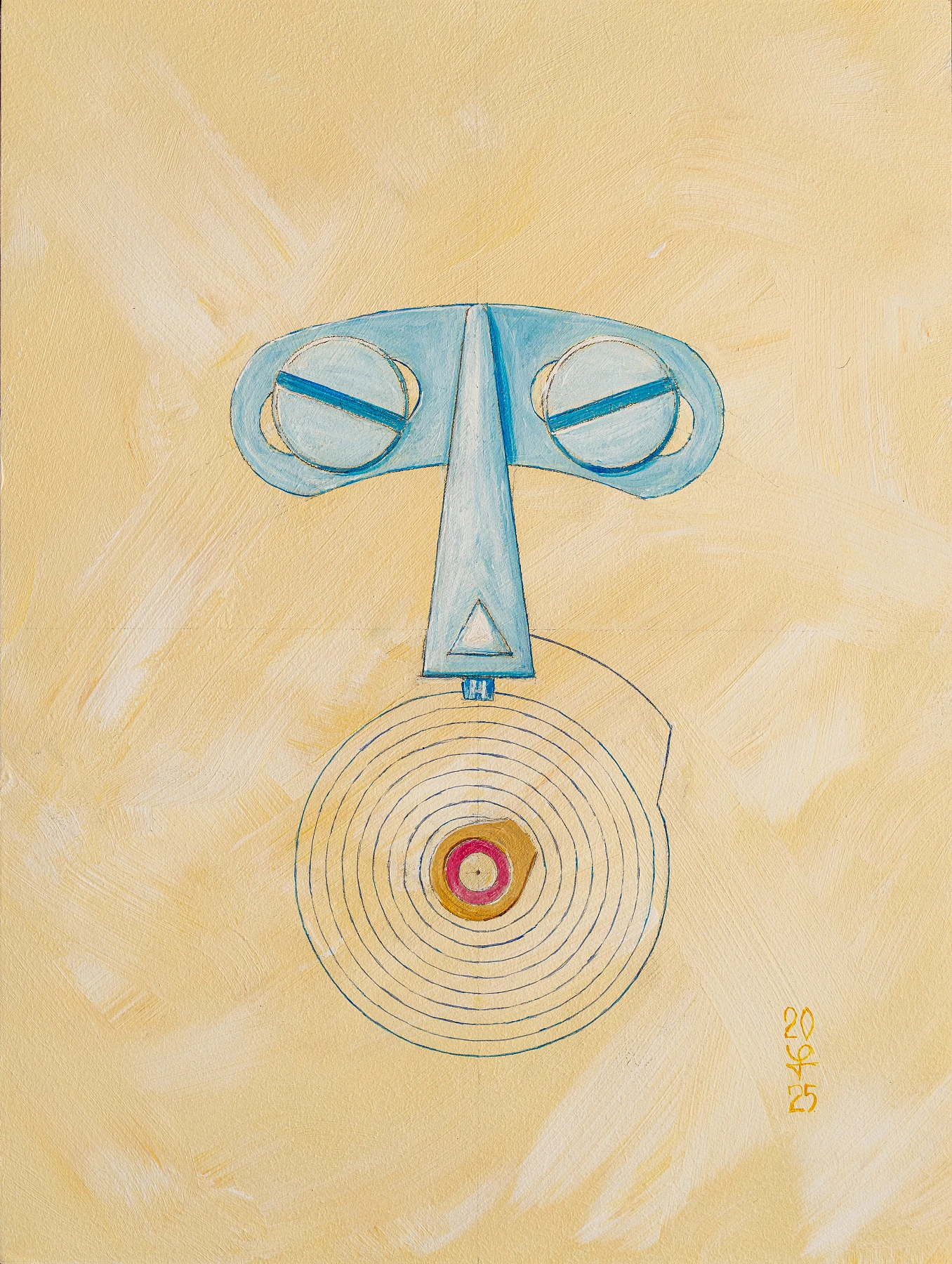 Кружок рубинового подпятника в центре спирали становится зрачком и одновременно сердцевиной часов, напоминая о хрупкой точке равновесия между точностью и чувством. Наделив самый деликатный узел хронометра человеческим выражением лица, художник «превращает инженерную идею в поэтичный символ времени», наделяя механику характером. Бежевый фон, написанный лёгкими мазками, словно приглушает тиканье невидимого механизма. Он приглашает зрителя прислушаться к тому, о чём шепчет раскрученная спираль – о цикличности жизни и тихом дыхании времени.