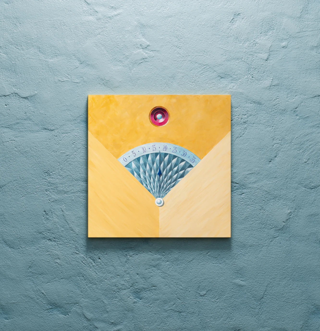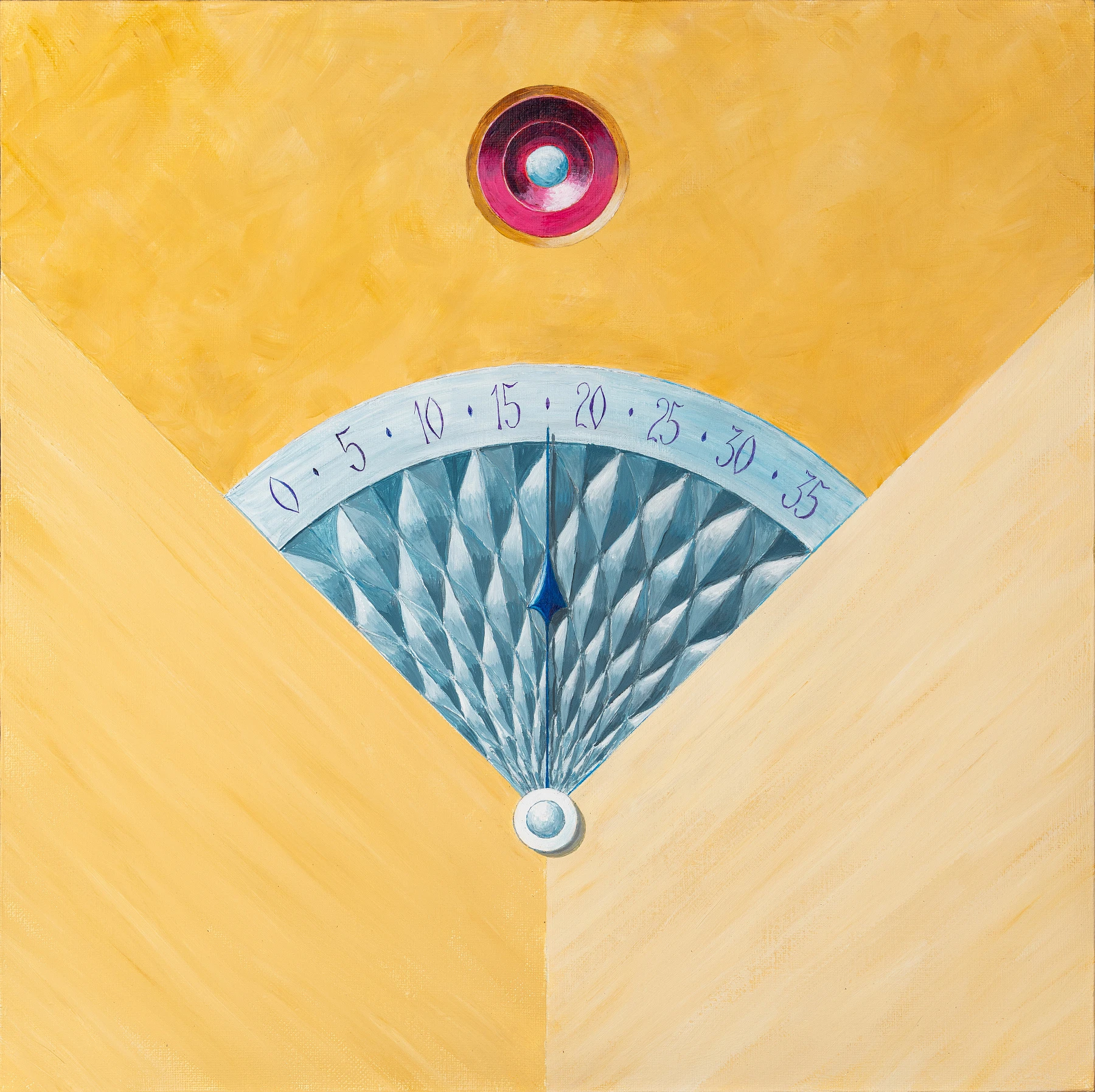 Внутри мерцает серебряный веер ретроградной шкалы; его волны напоминают нежную кожу, а синий луч‑стрелка скользит вниз к точке нуля, словно ожидание прикосновения. Над центром пылает рубиновый камень‑сердцевина, удерживая напряжение между технической точностью и чувственным предчувствием нового цикла.